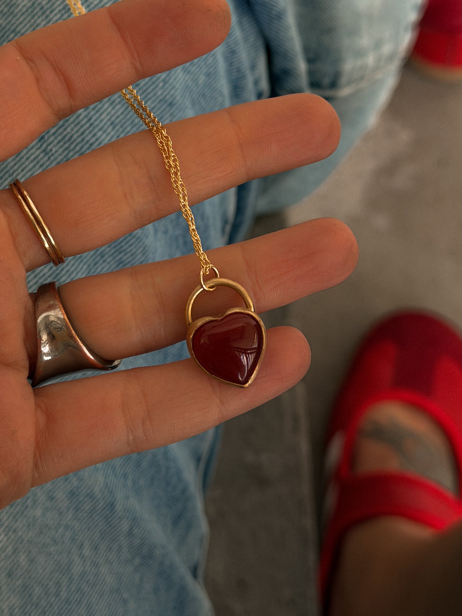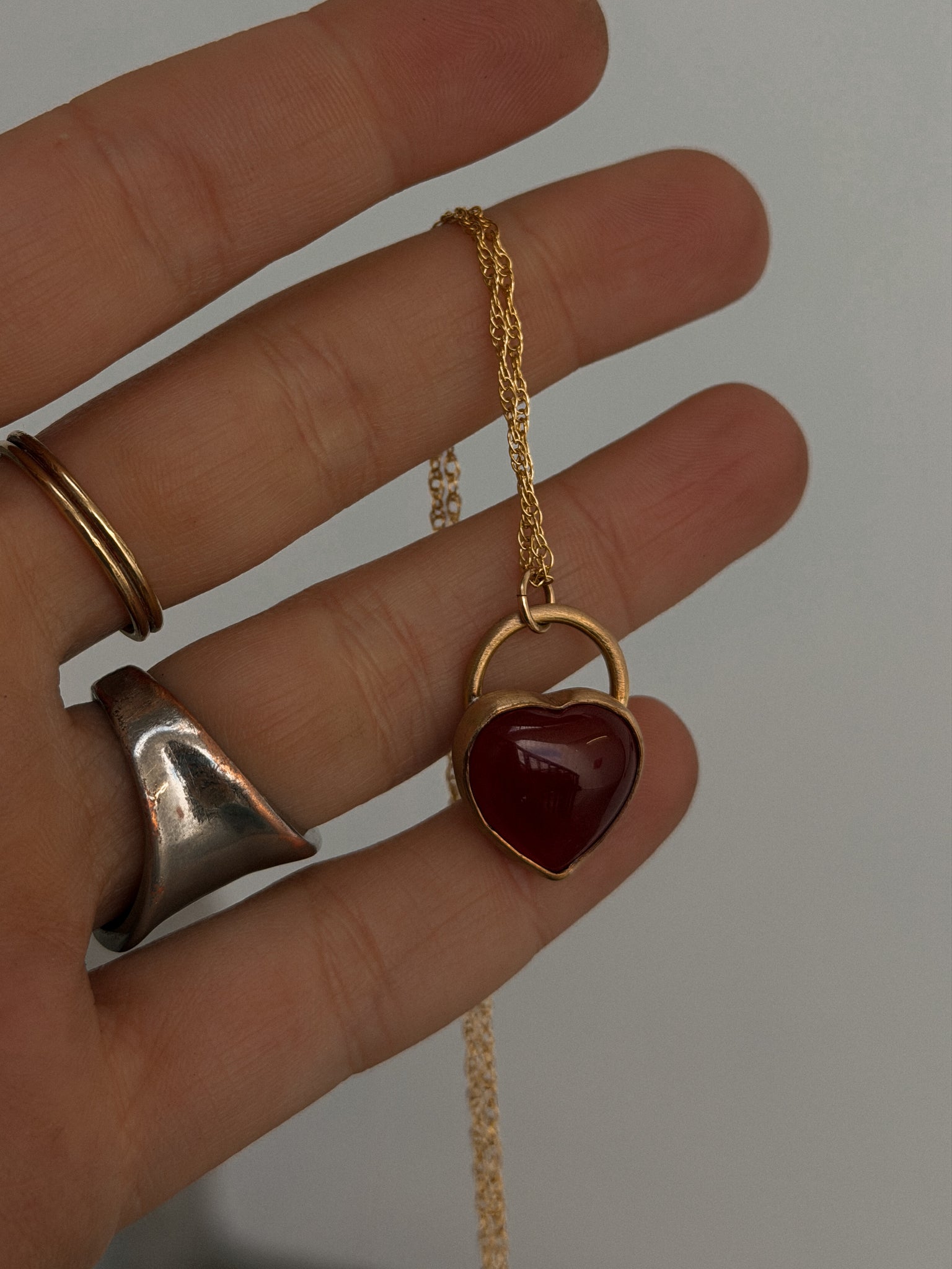 • 14k gold fill hand formed around genuine carnelian heart