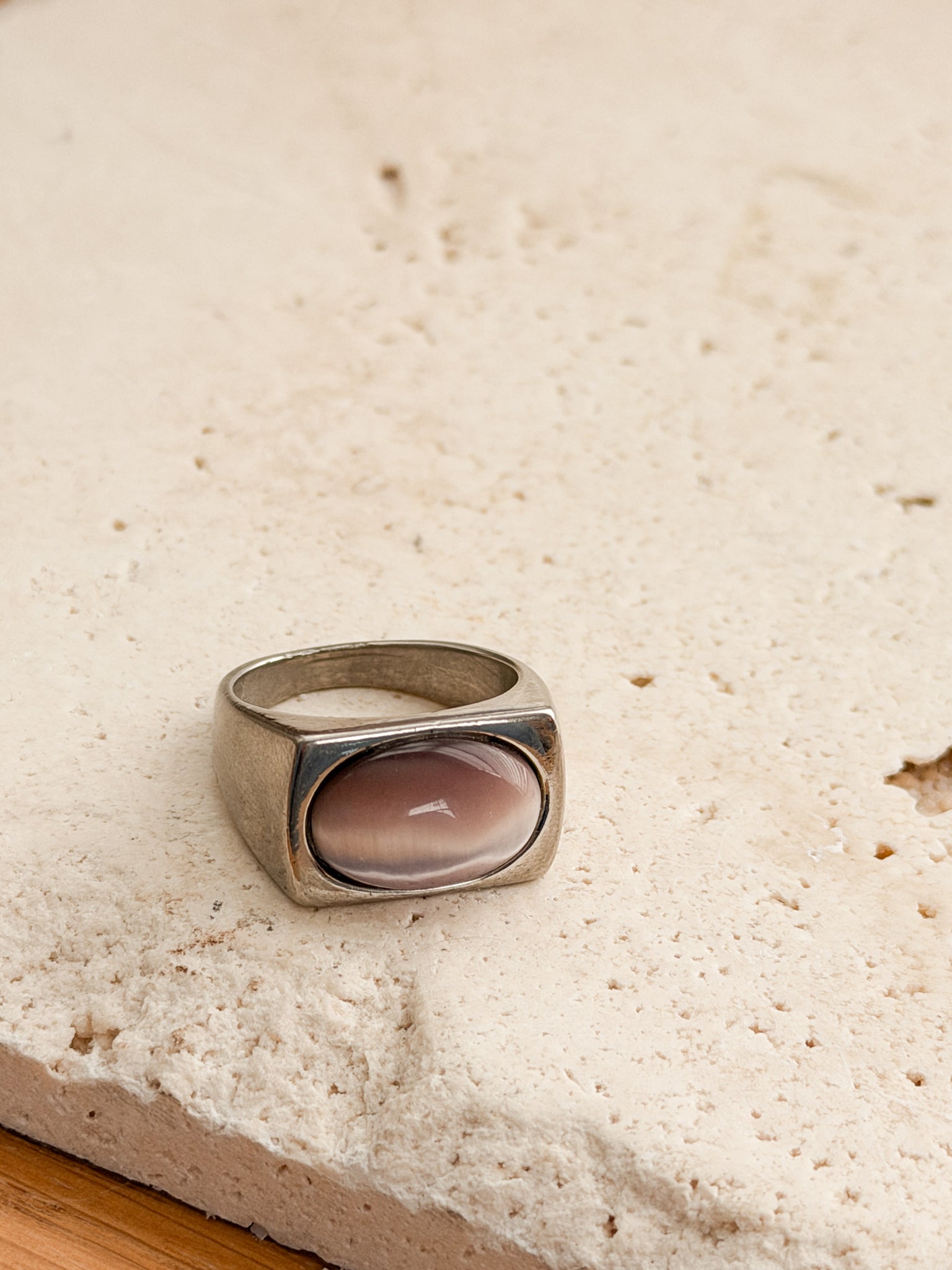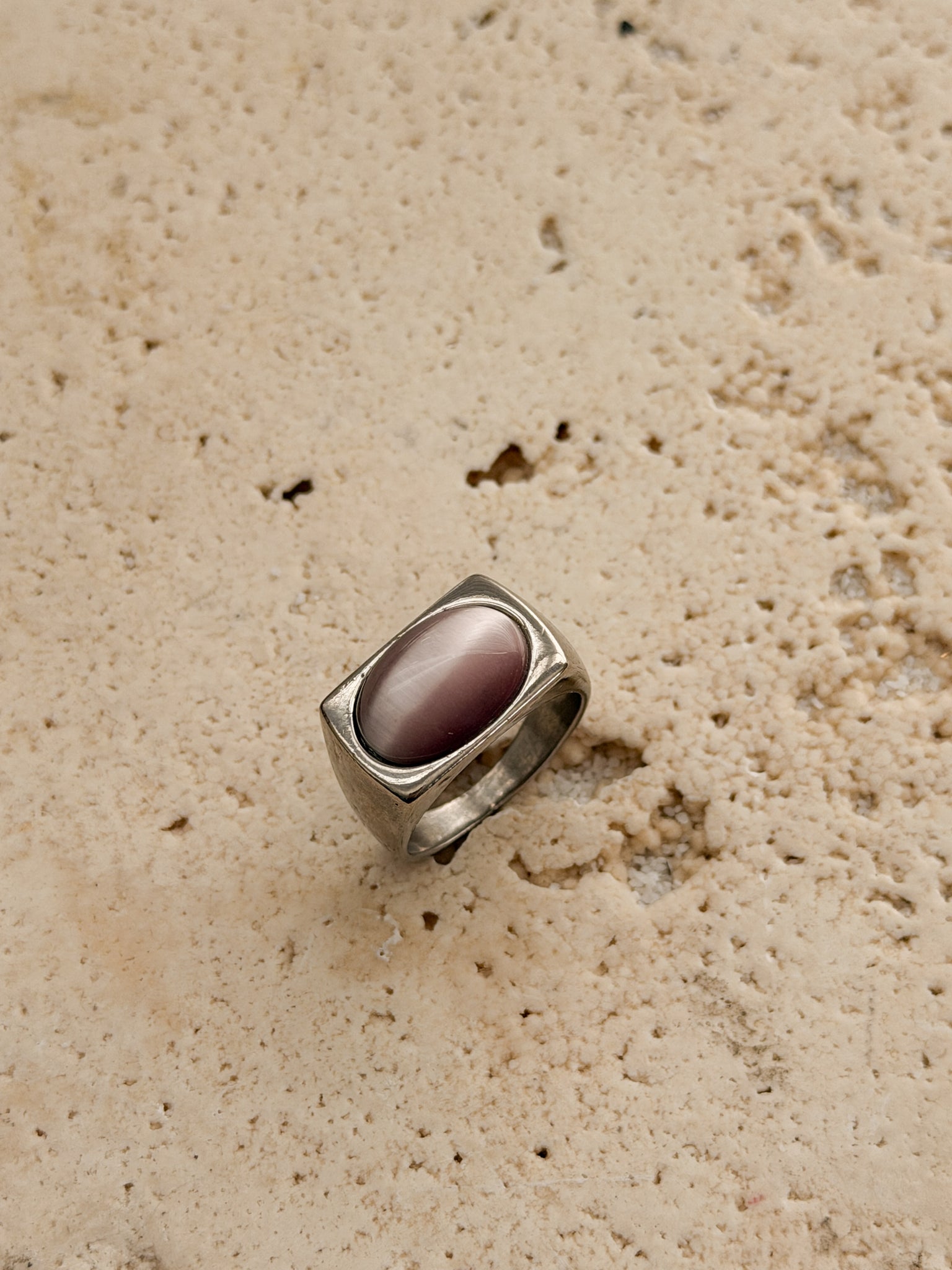 • Vintage stainless steel ring with simulated gemstone