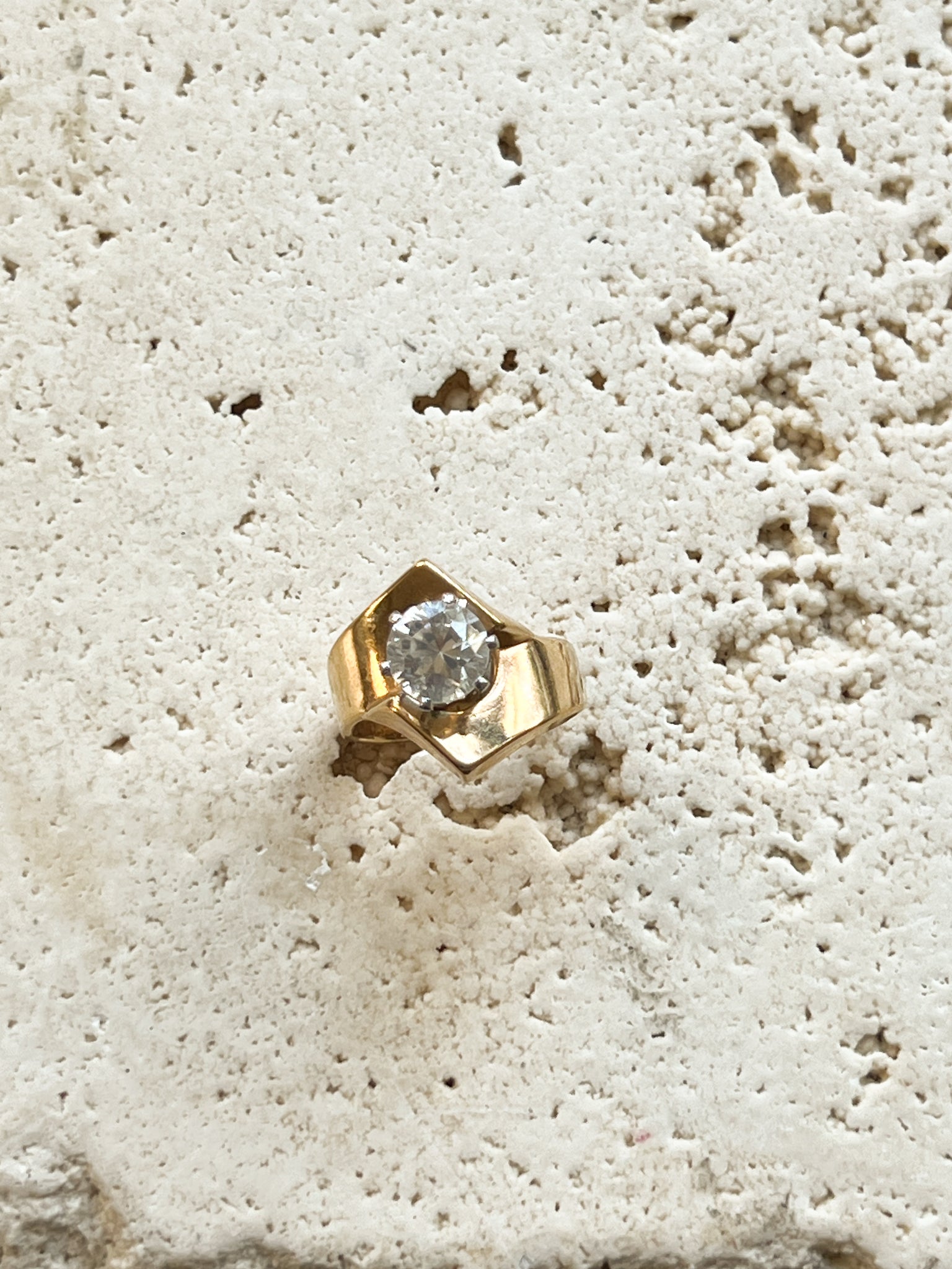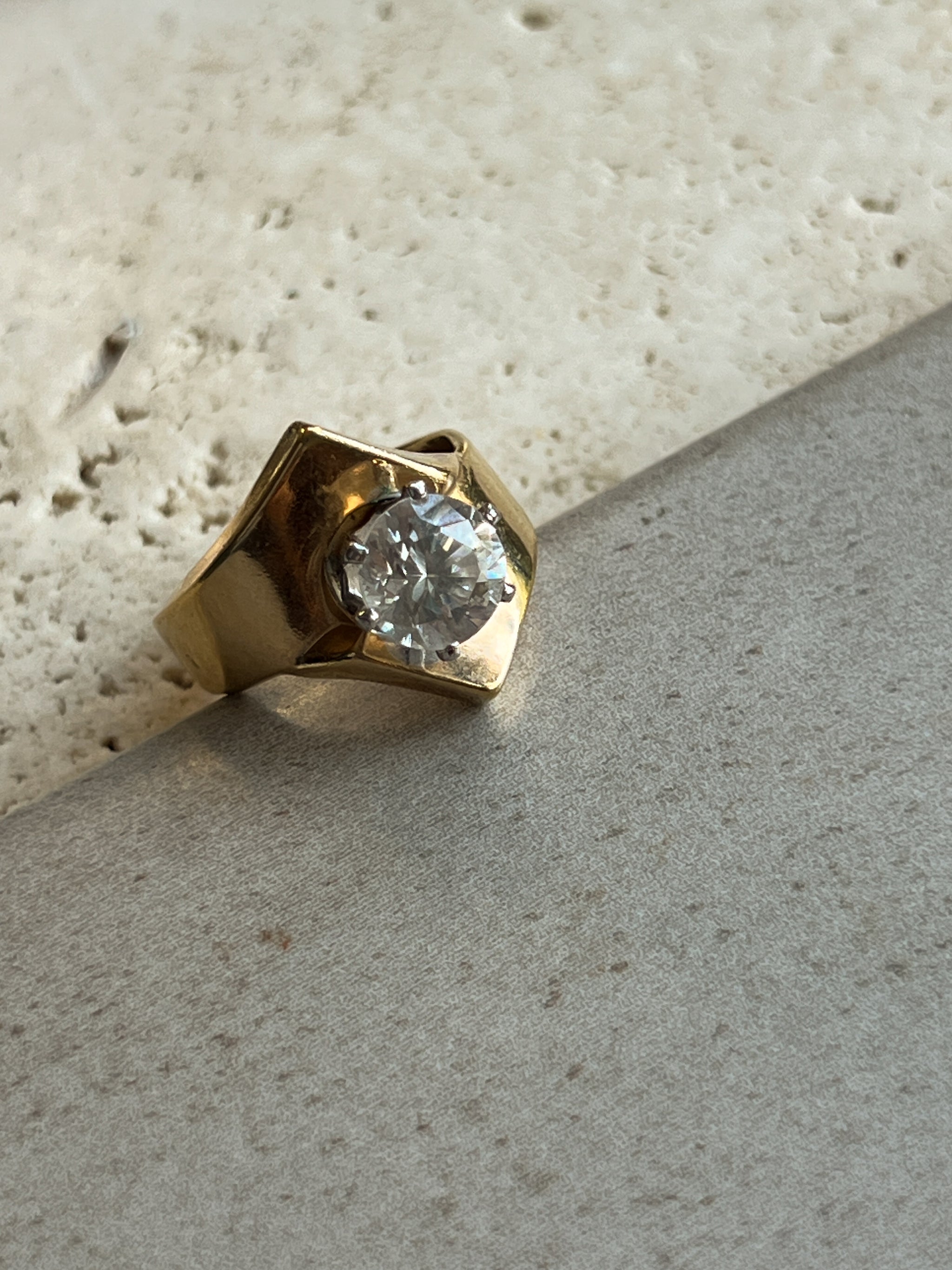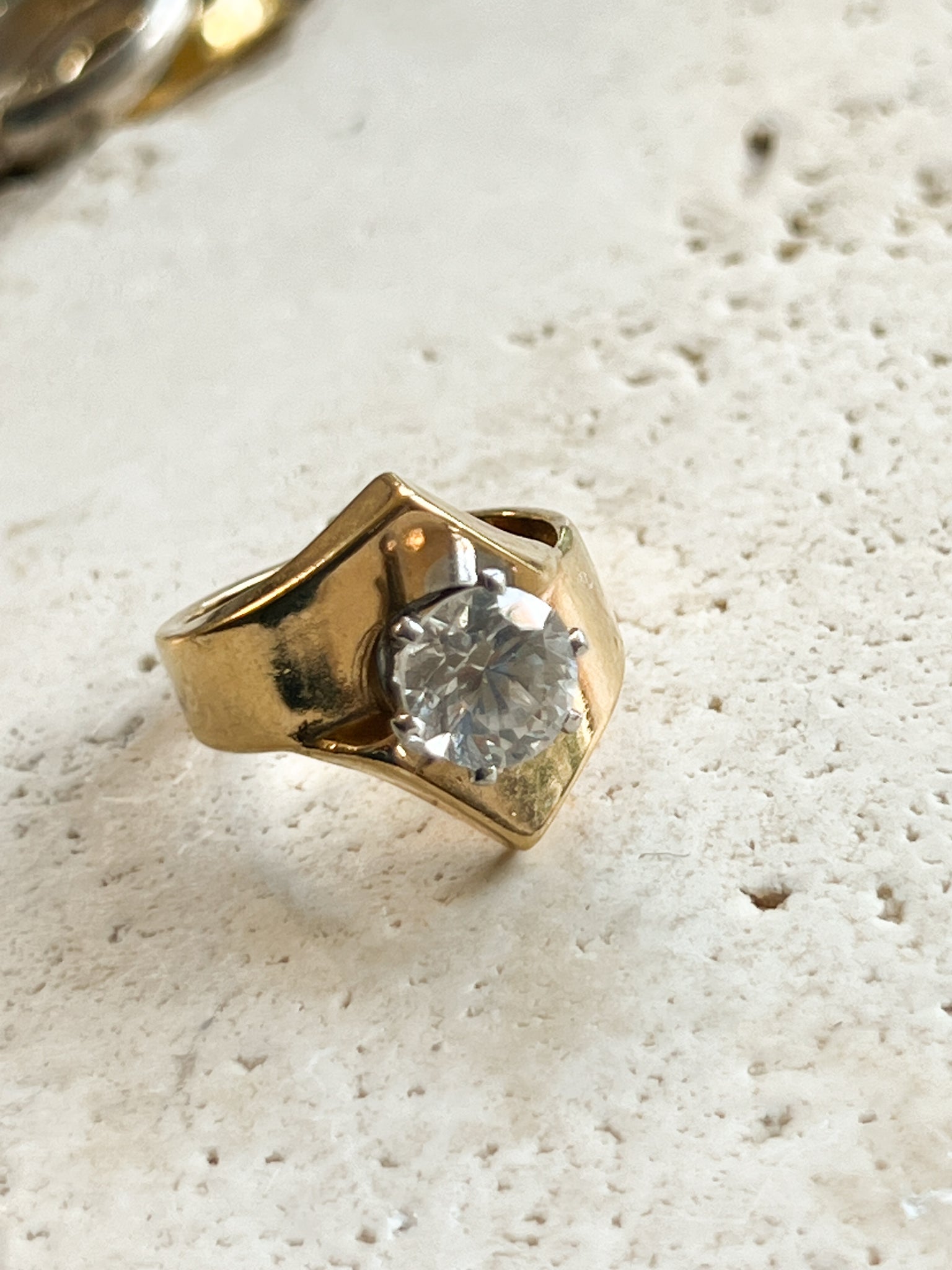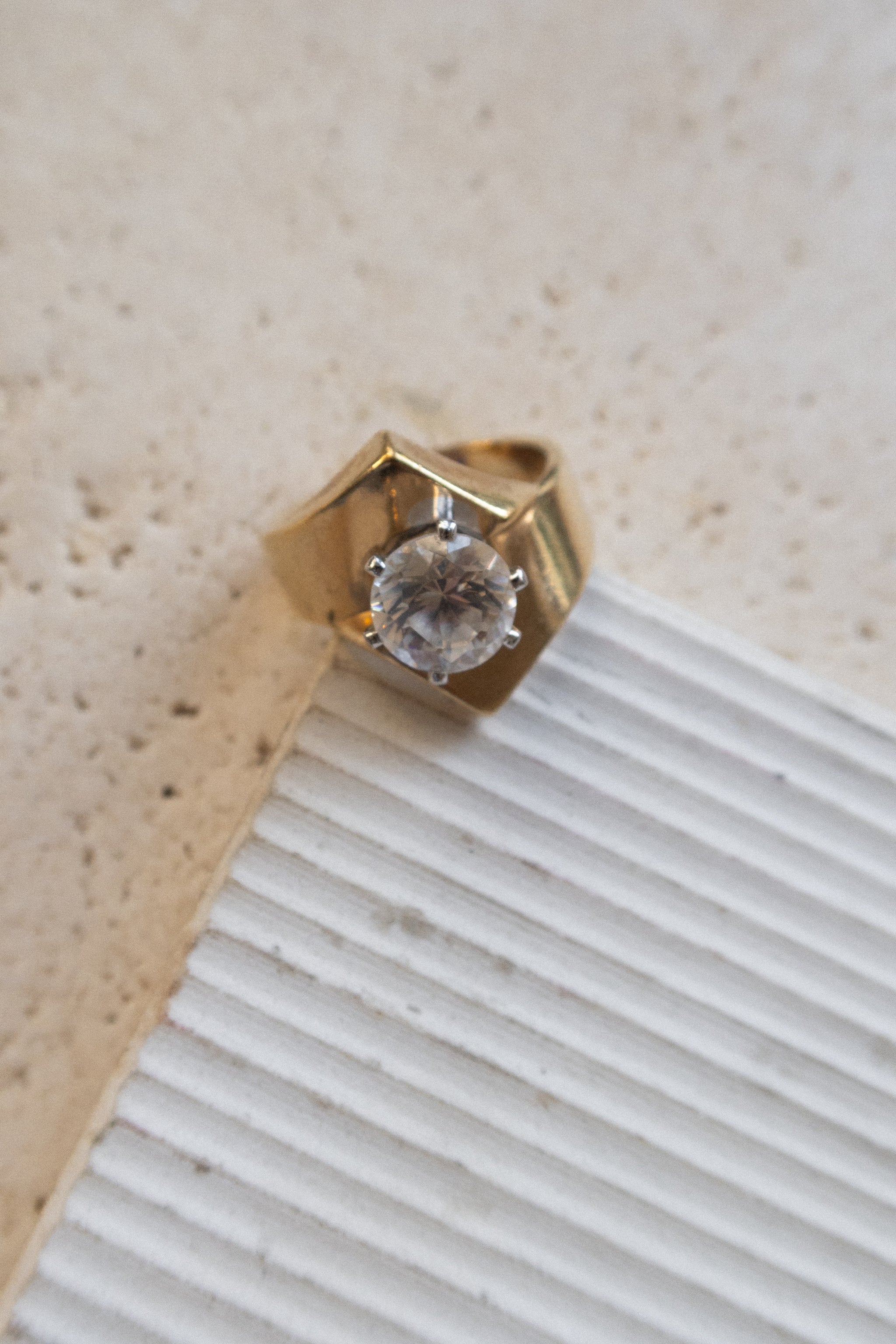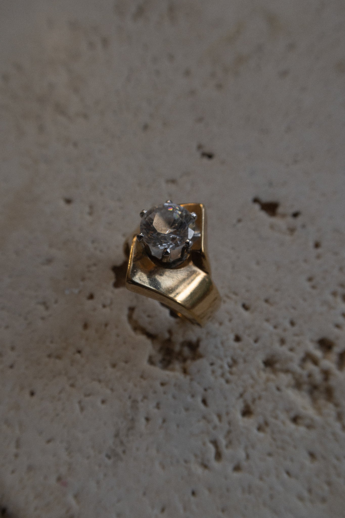 - Vintage gold electroplated ring from 1970's with cubic zirconia