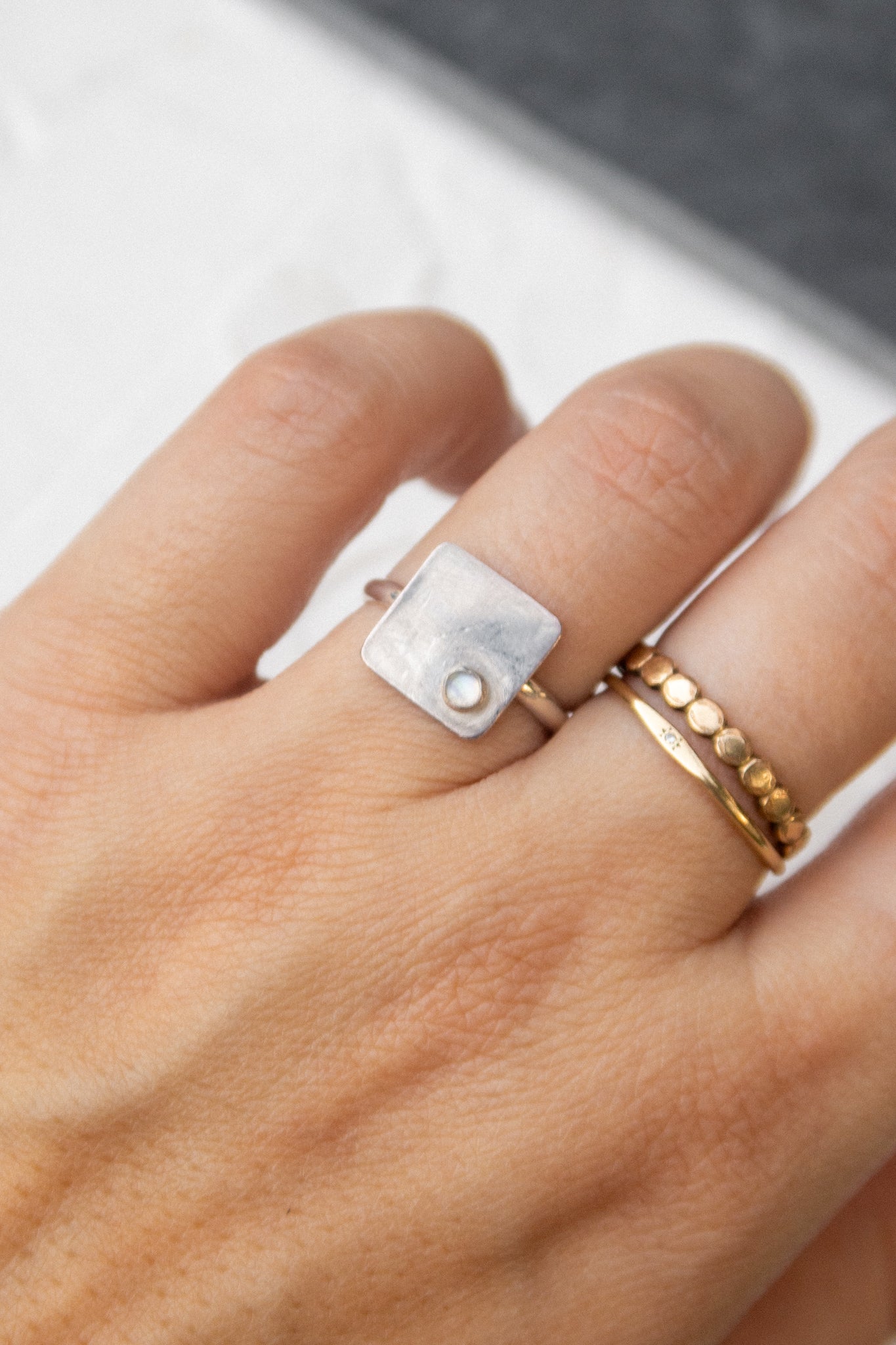 Mini Moonstone Square Ring