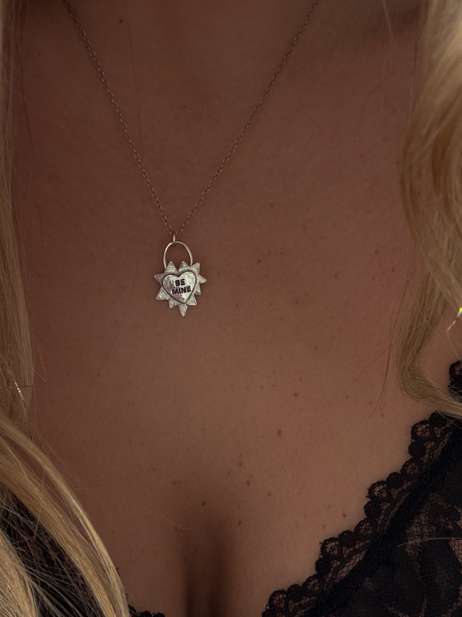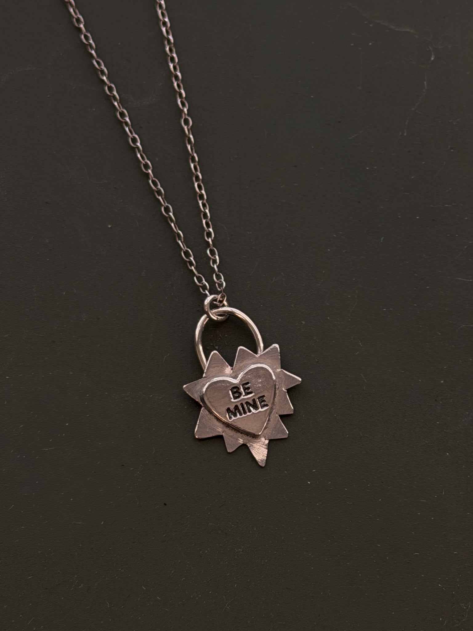 - sterling silver sheet metal with BE MINE stamped heart