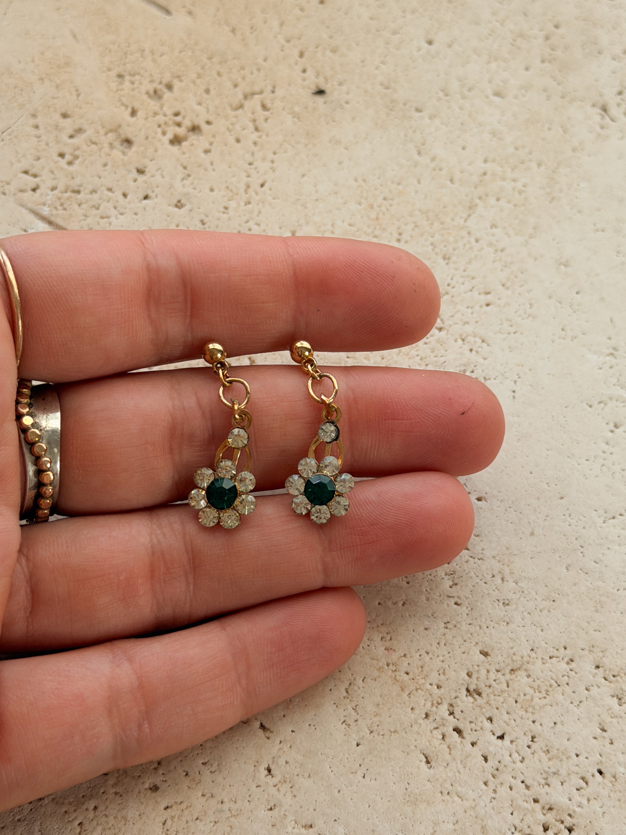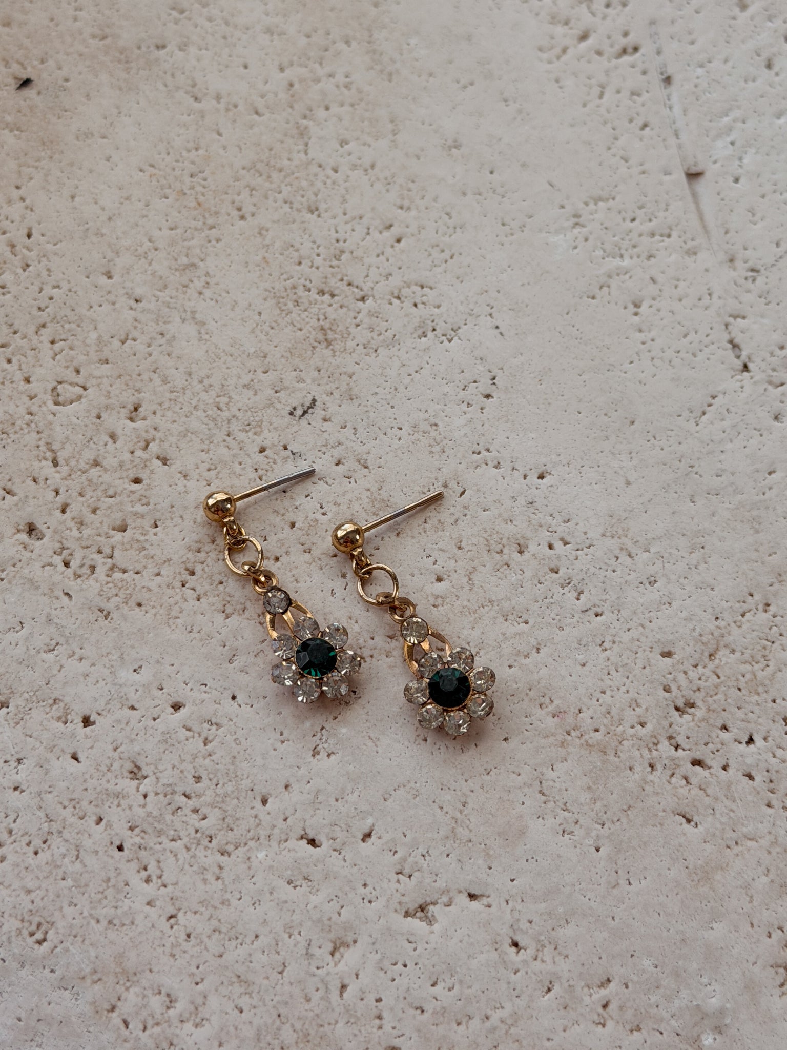Vintage Emerald Flower Drop Earrings