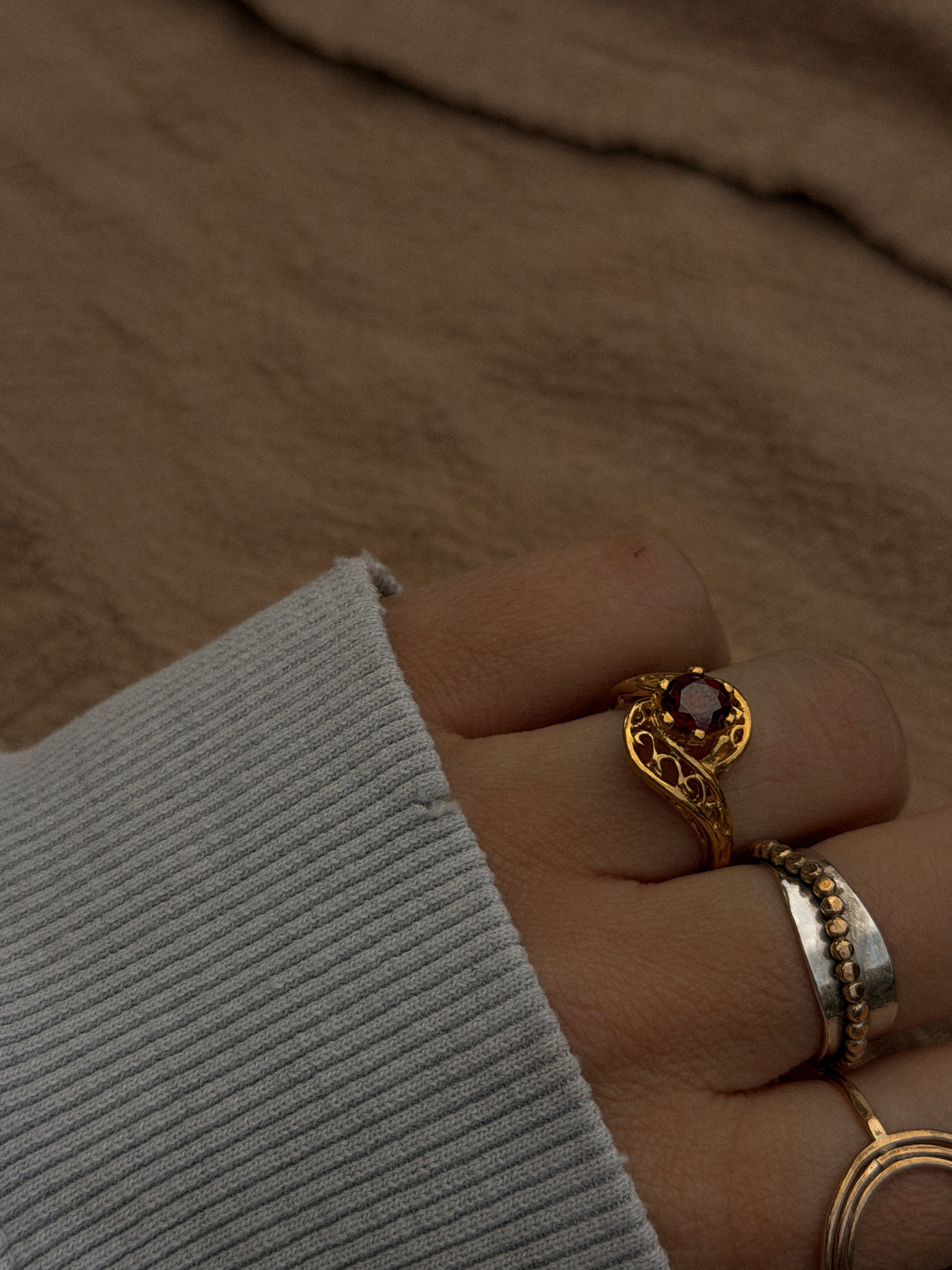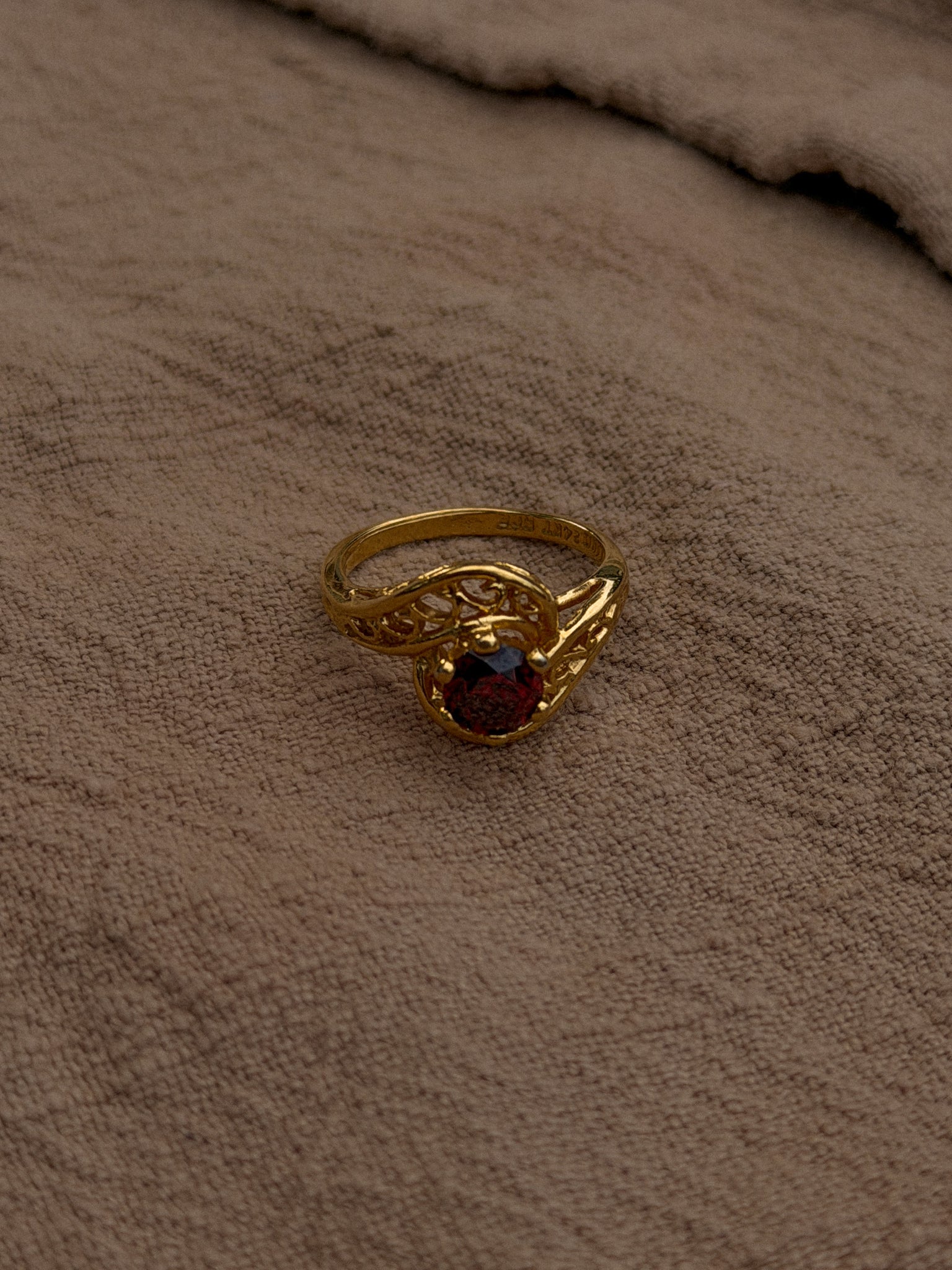 Vintage Garnet Filigree Ring
