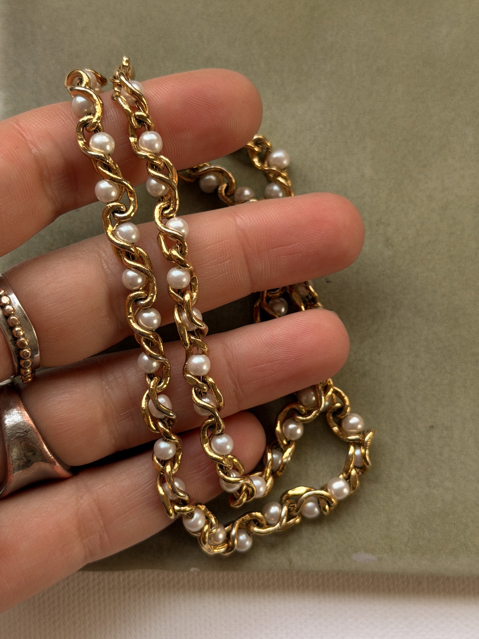 - vintage pearl in gold chain